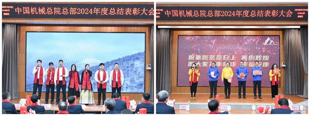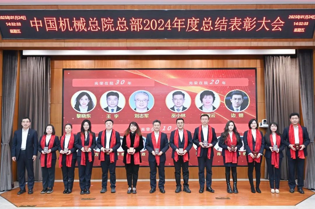 大会现场气氛喜庆热烈。《增信赋能 携手同行》短片,回顾2024年丰硕成果、展望2025年发展前景。各部门以视频方式送来新春祝福。大会向光荣在院30年、20年、10年的干部职工颁发纪念章;对涌现出的先进集体和优秀个人进行了表彰。集团领导为获奖代表颁奖,获奖代表感言分享成长喜悦、表达美好祝福。